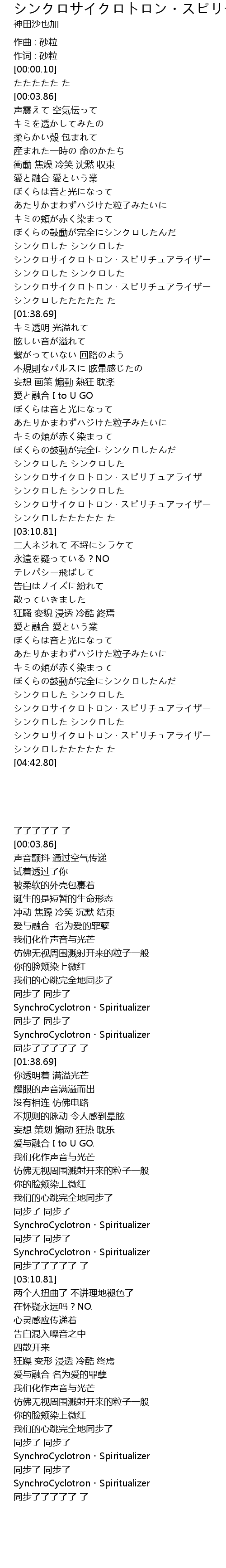 | [04:17.83] | SynchroCyclotron・Spiritualizer |