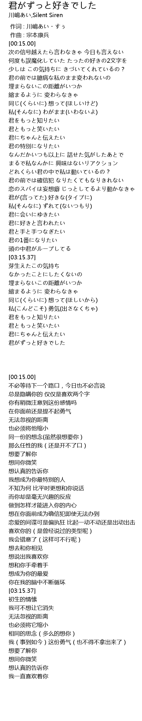 | [04:09.03] | 君がずっと好きでした |