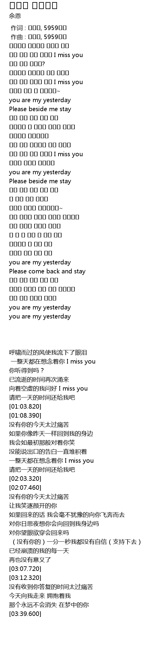 | [00:44.200] | 텅빈 내게 인사를 해요 I miss you |