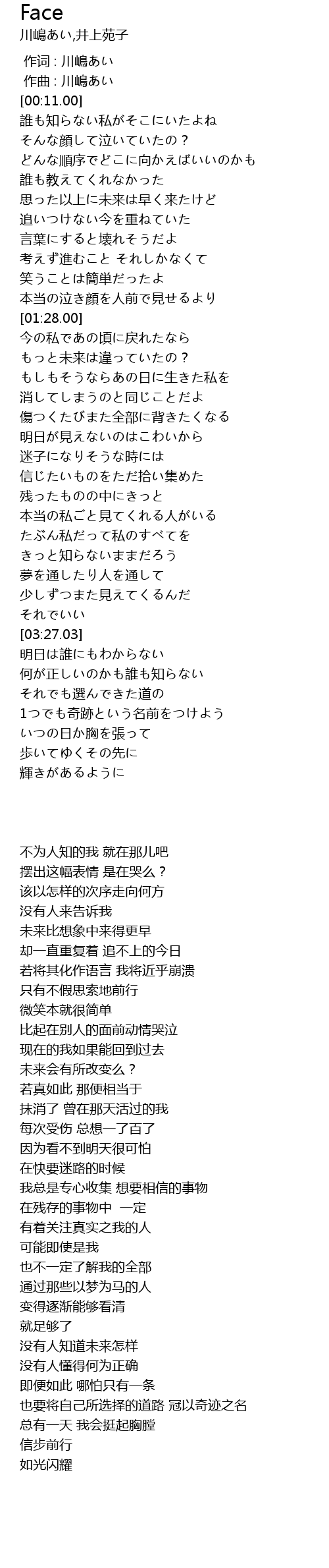 | [00:00.00] | 作词 : 川嶋あい |