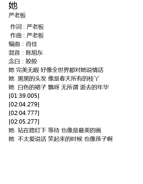 | [00:01.000] | 作曲 : 严老板 |