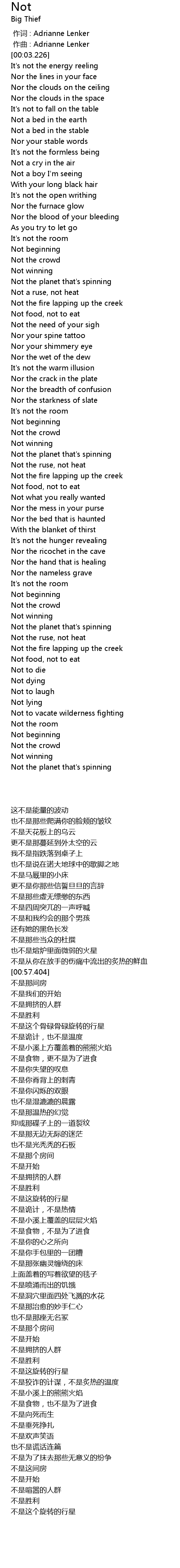 | [00:00.000] | 作词 : Adrianne Lenker |