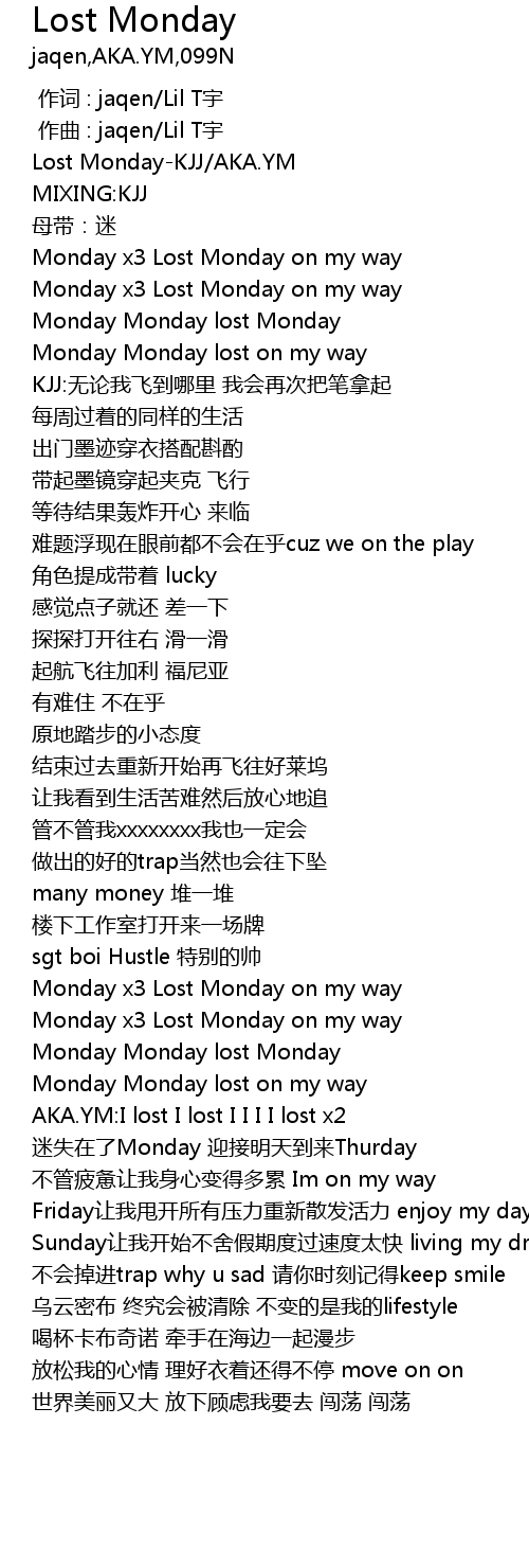 | [00:14.950] | Monday x3 Lost Monday on my way |