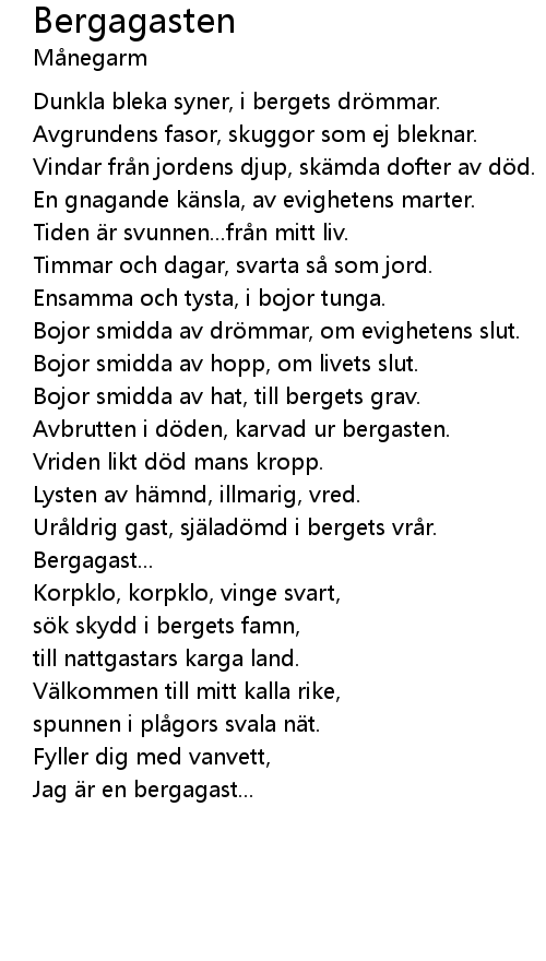 | Dunkla bleka syner, i bergets dr mmar. | |