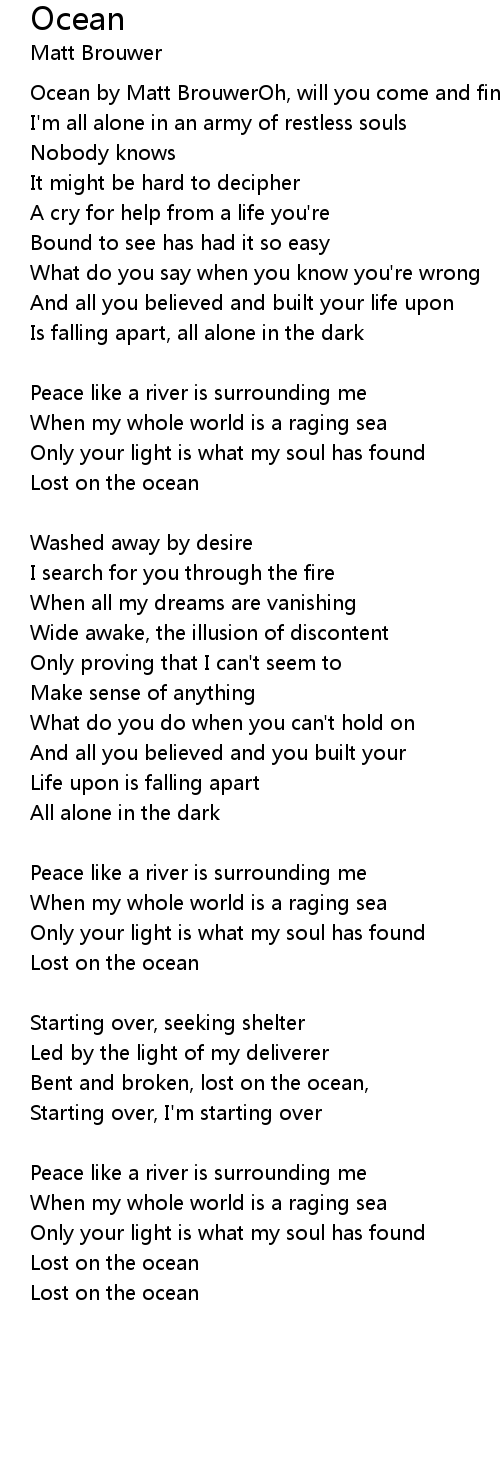 Ocean by Matt BrouwerOh, will you come and find me |