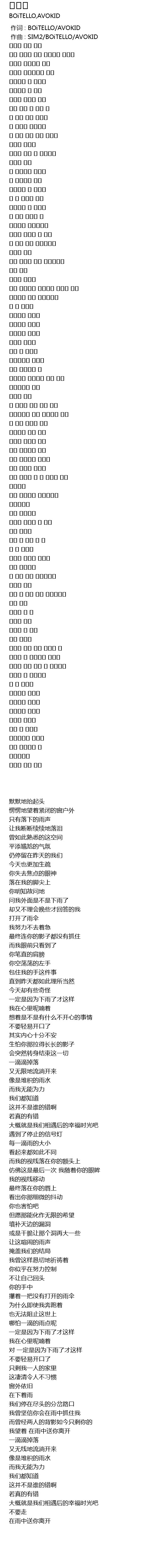 | [00:00.000] | 作词 : BOiTELLO/AVOKID |