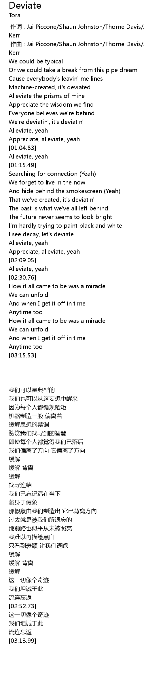 | [00:40.68] | We' re deviatin', it' s deviatin' |