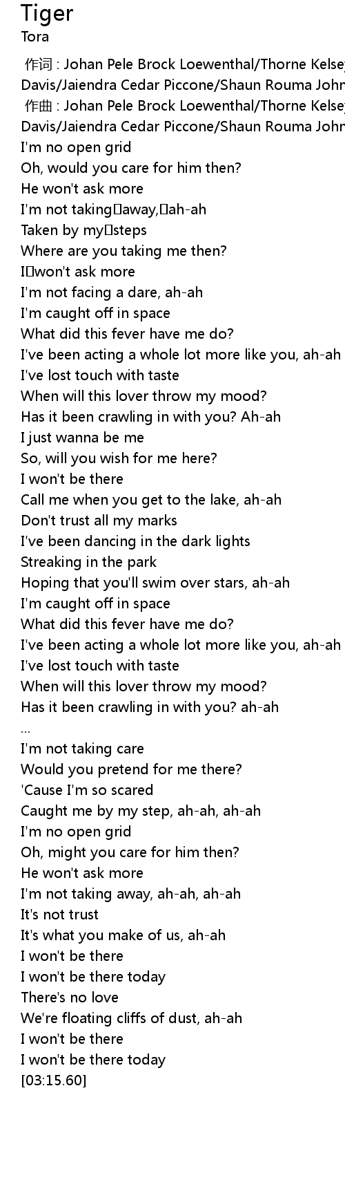 | [00:00.00] | 作词 : Johan Pele Brock Loewenthal/Thorne Kelsey Howell Davis/Jaiendra Cedar Piccone/Shaun Rouma Johnston |