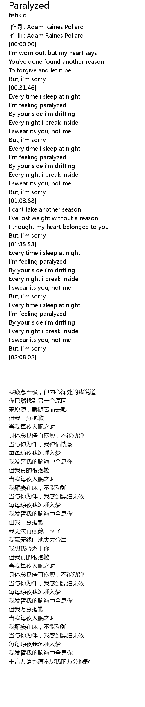 | [00:00.00] | zuò cí : Adam Raines Pollard |