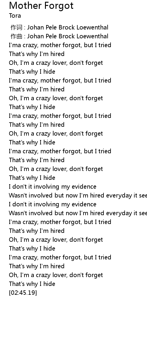 | [00:44.14] | I' ma crazy, mother forgot, but I tried |