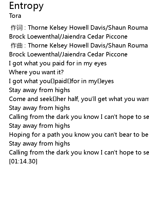 | [00:01.00] | 作曲 : Thorne Kelsey Howell Davis/Shaun Rouma Johnston/Johan Pele Brock Loewenthal/Jaiendra Cedar Piccone |