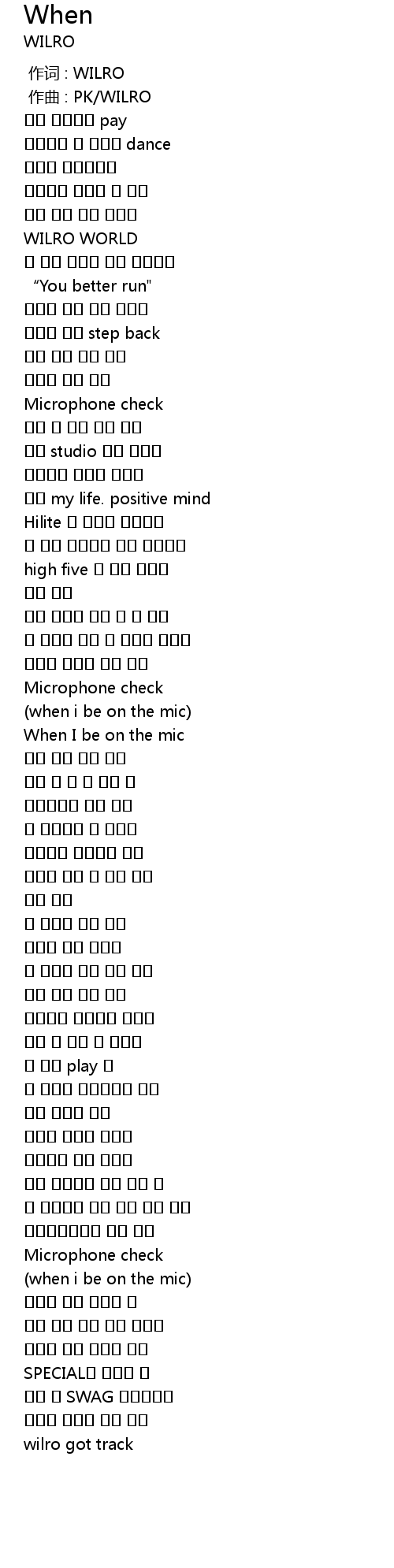 | [00:01.000] | zuò qǔ : PK WILRO |