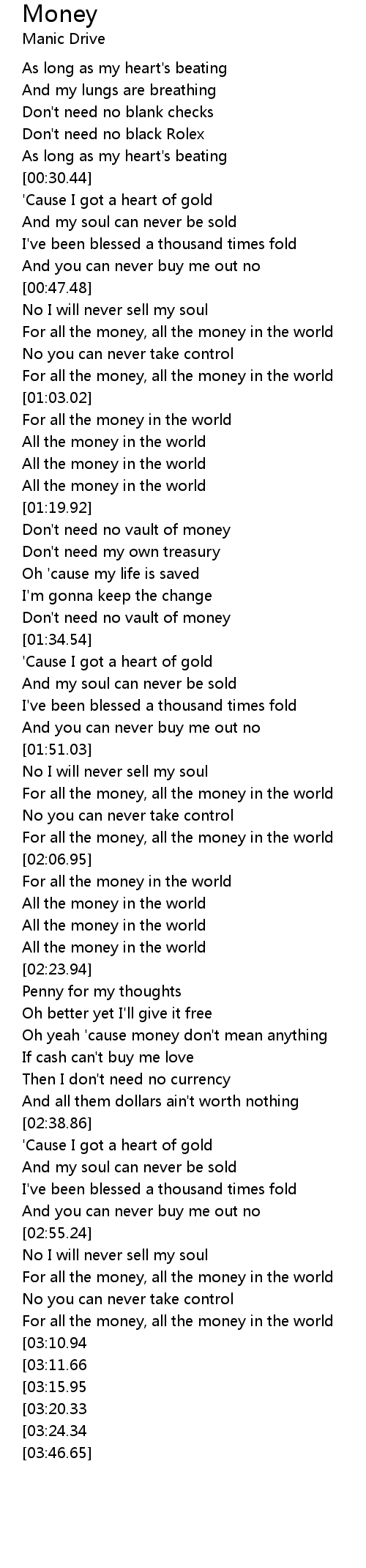 For all the money, all the money in the world |