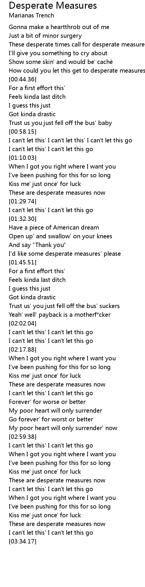 | [01:40.79] | I'd like some desperate measures' please |