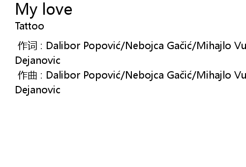 | [00:00.00-1] | 作词 : Dalibor Popović/Nebojca Gačić/Mihajlo Vukić/Dejan Dejanovic |
