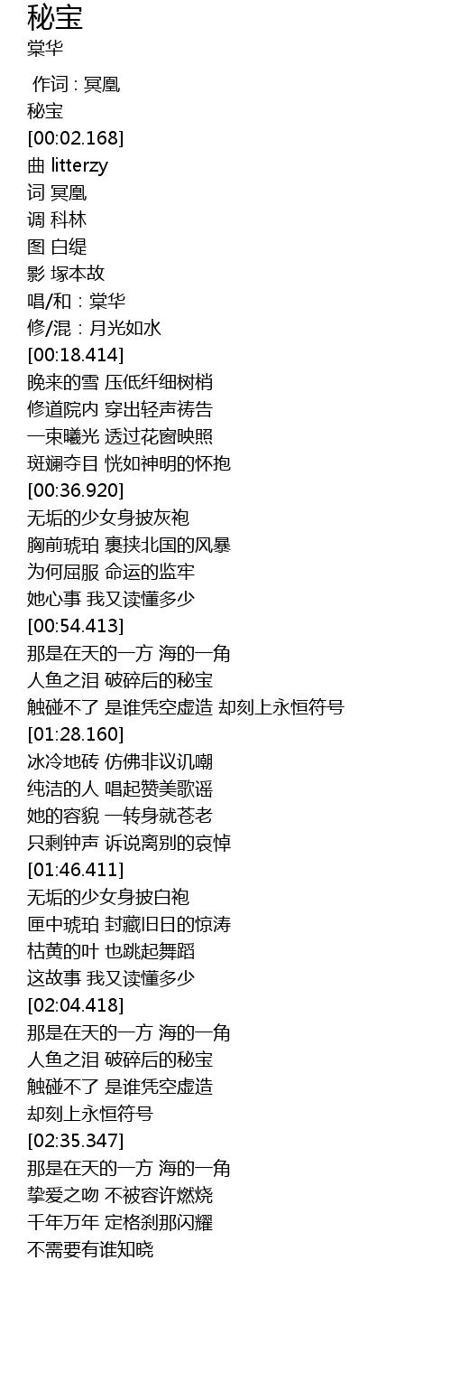 | [02:09.597] | 人鱼之泪 破碎后的秘宝 |