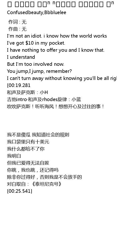 | [00:24.537] | 对白取自:《泰坦尼克号》 |