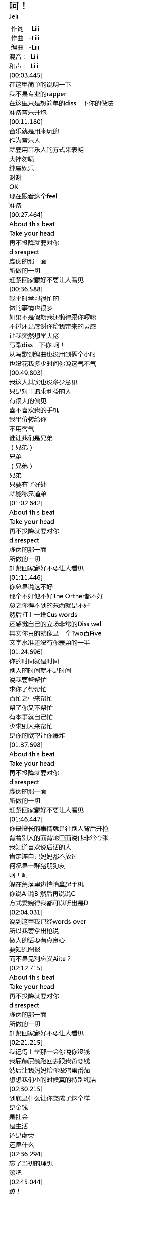 | [00:45.088] | 写歌diss一下你 呵! |