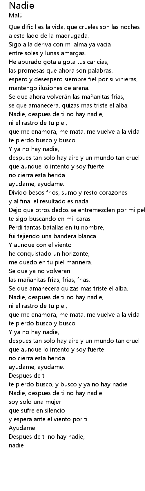 | Nadie, despues de ti no hay nadie, | |