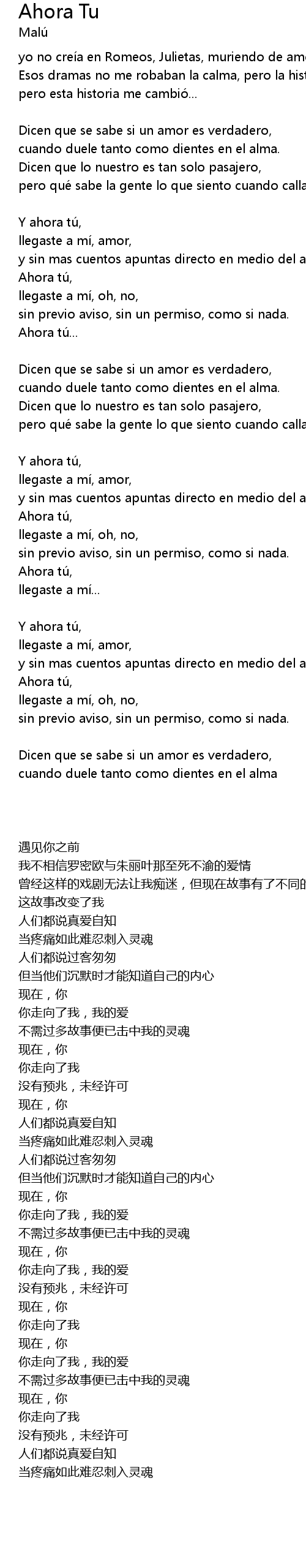 | 歌曲 | Ahora Tu |