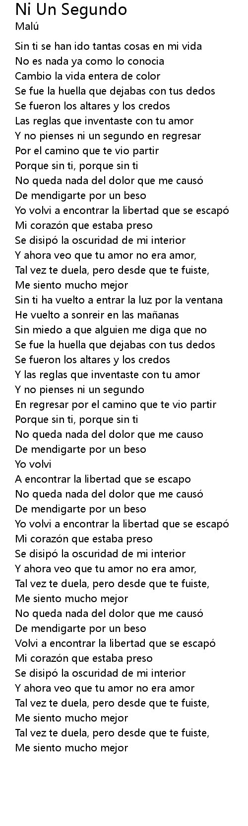 | 歌曲 | Ni Un Segundo |