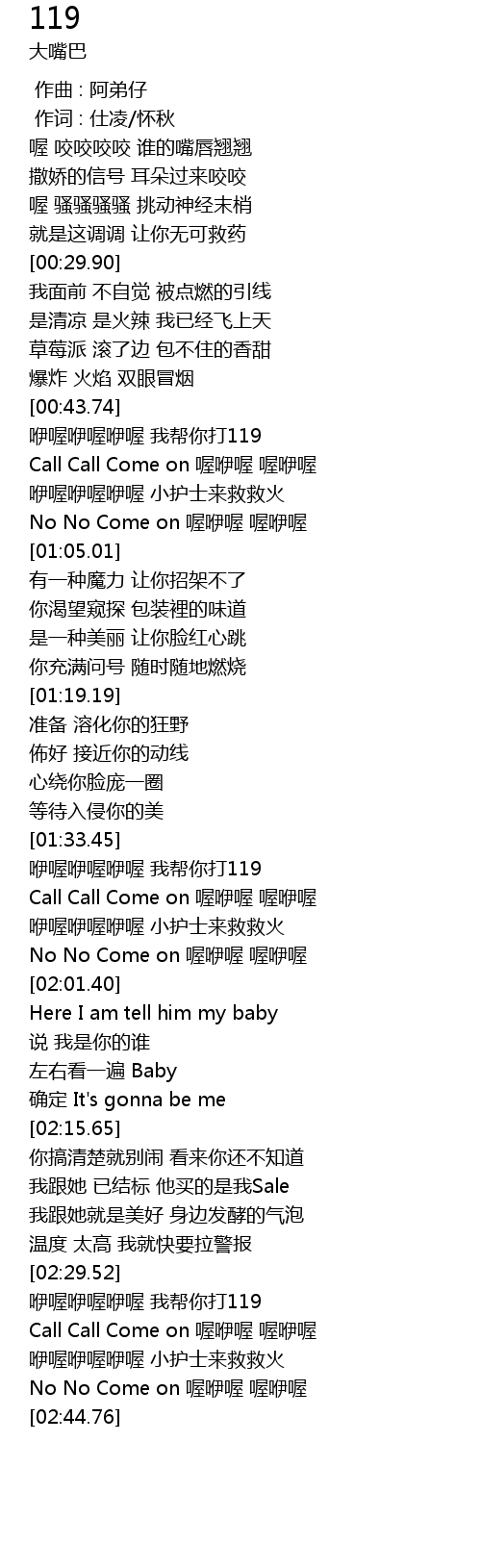 | [02:30.09] | 咿喔咿喔咿喔 我帮你打119 |