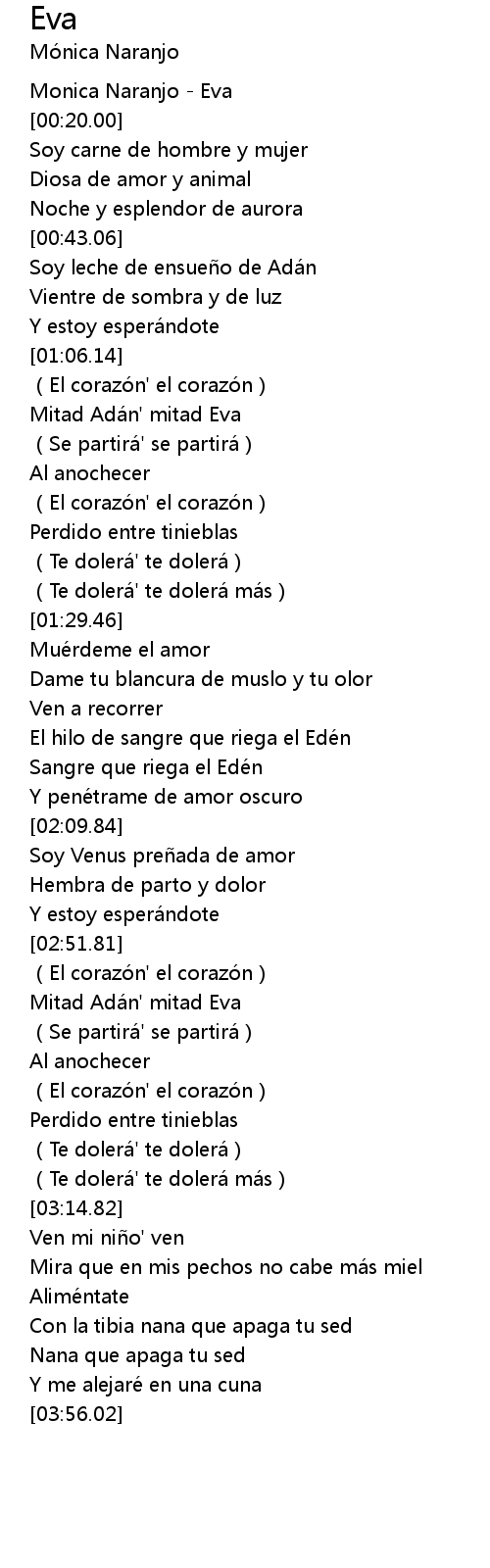 | [01:09.53] | Mitad Adán' mitad Eva |
