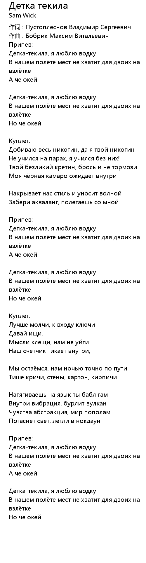 Детка текила 歌词