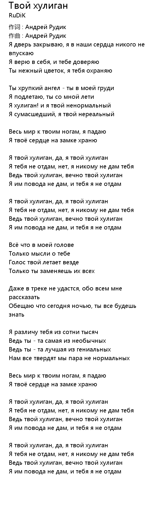 Твой хулиган 歌词