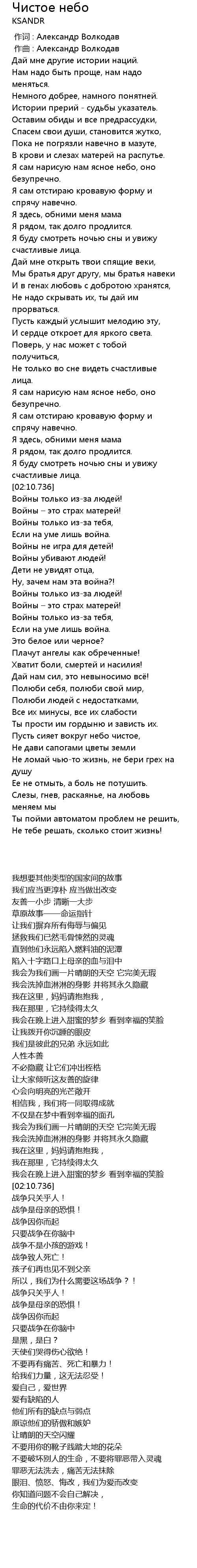 | 歌曲 | Чистое небо |