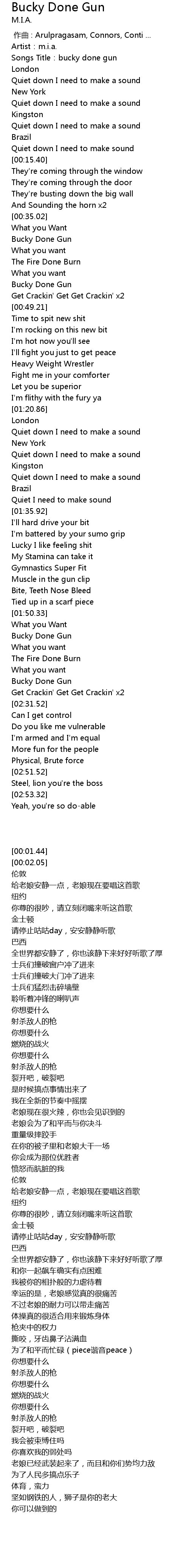 | [00:01.44] | Artist:m.i.a. |