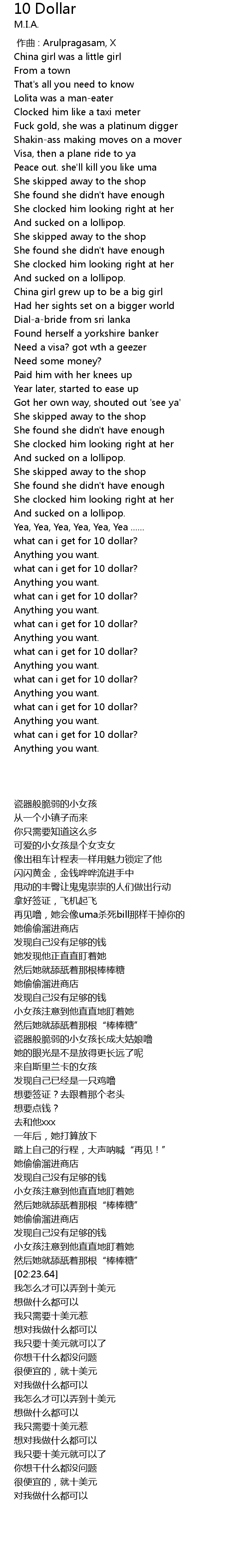 | [02:54.52] | 我怎么才可以弄到十美元 |