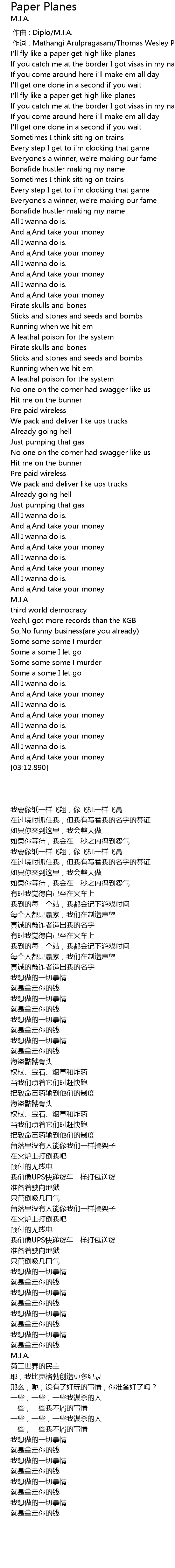 | [00:00.00] | 作曲 : Diplo/M.I.A. |
