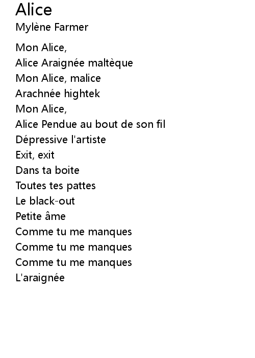 | Mon Alice, | |