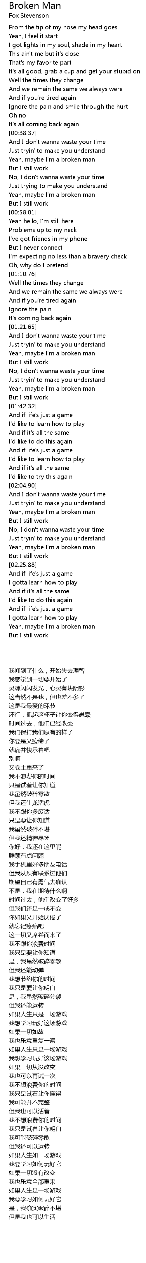 Broken Man 歌词