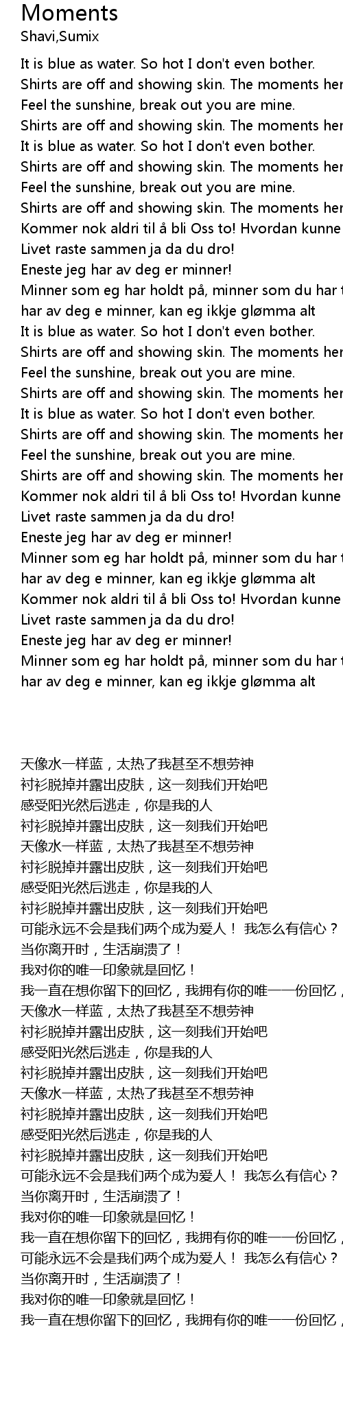 | [02:54.94] | Minner som eg har holdt på, minner som du har trådd på, einaste eg har av deg e minner, kan eg ikkje glømma alt |