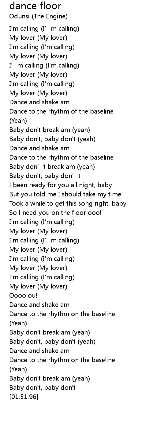 | [01:10.19] | So I need you on the floor ooo! |