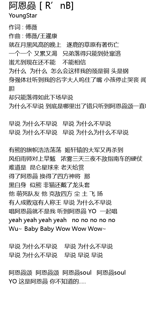 | 唱阿恩赑就不是我 听到阿恩赑 YO 一起唱 | |