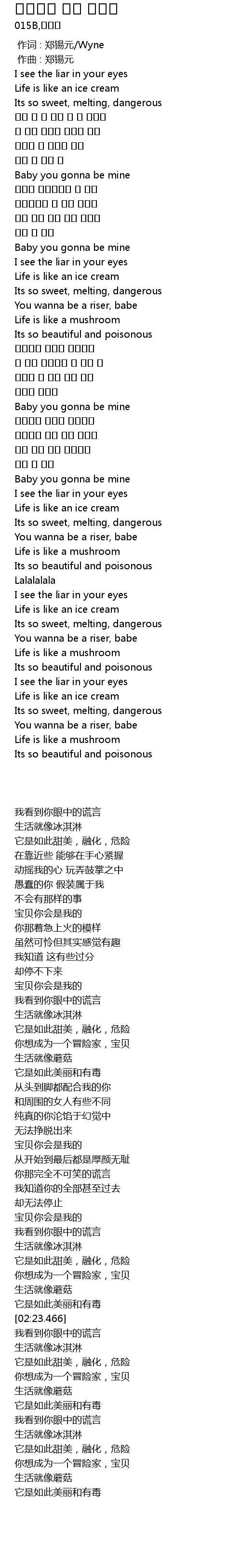 | [03:21.915] | Its so sweet, melting, dangerous |