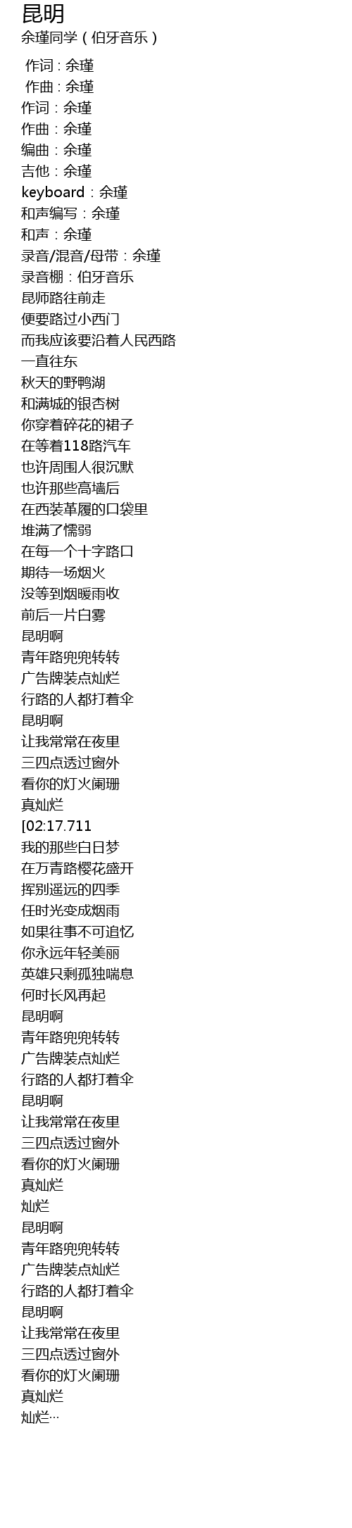 | [02:55.676] | 昆明啊 |