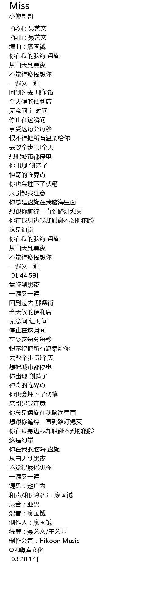 | [03:17.39] | 制作公司:Hikoon Music |