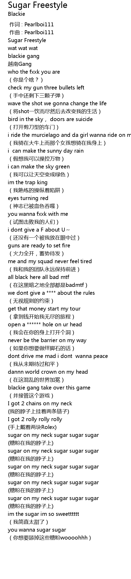 | [01:33.789] | sugar on my neck sugar sugar sugar |