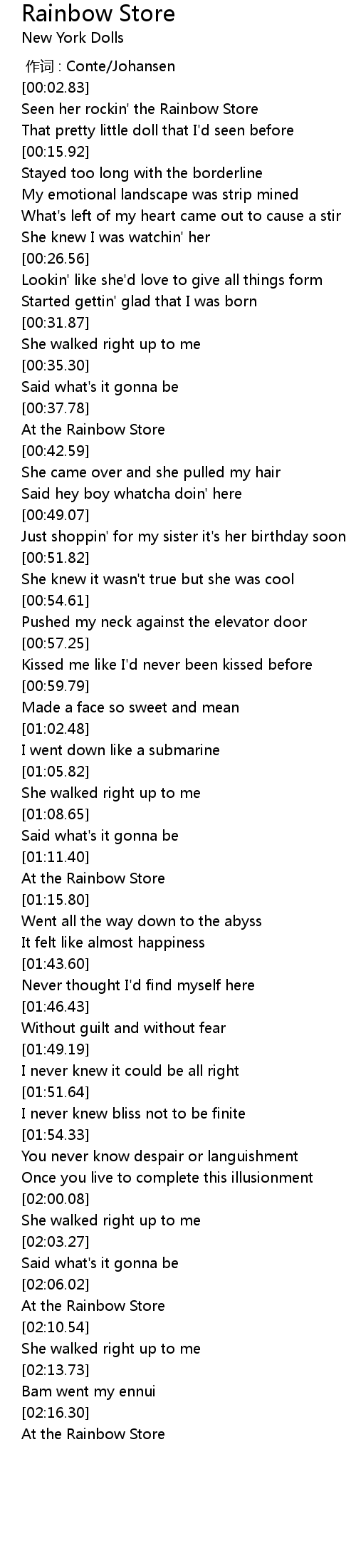 | [02:17.60] | At the Rainbow Store |
