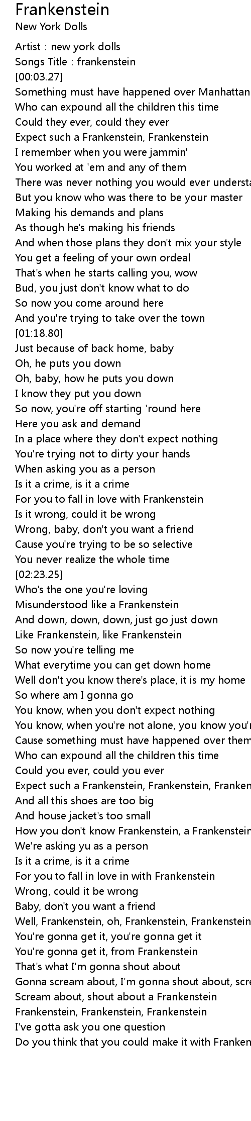 | [05:11.34] | Frankenstein, Frankenstein, Frankenstein |