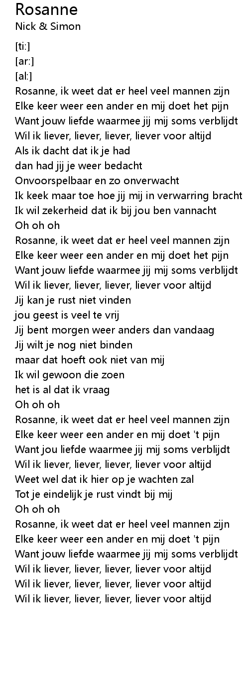 Rosanne, ik weet dat er heel veel mannen zijn |