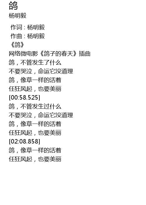 | [00:43.099] | 鸽,像草一样的活着 |