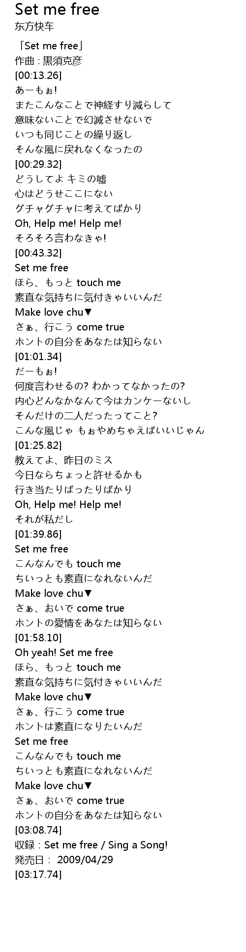 | [03:11.74] | 収録:Set me free / Sing a Song! |