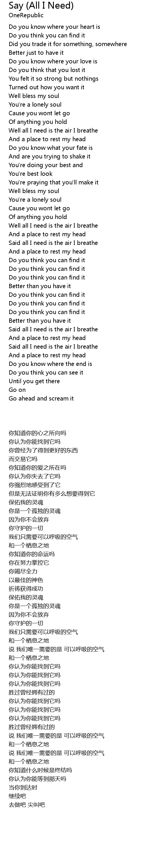 | [02:54.49] | Said all I need is the air I breathe |
