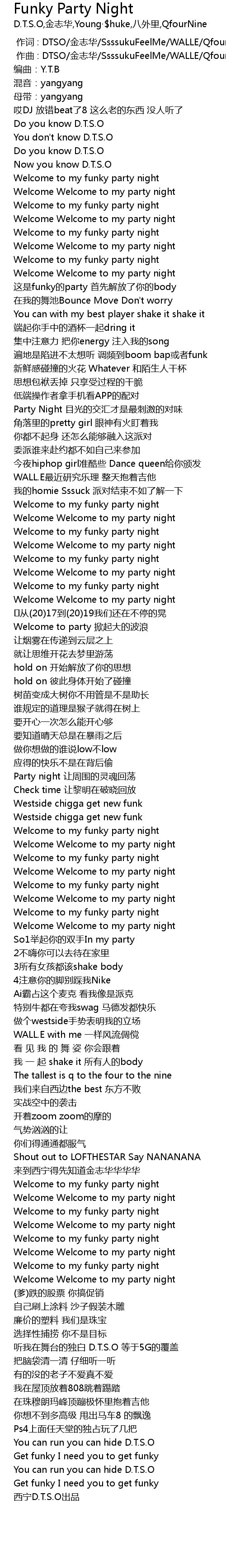 | [01:07.422] | zhè shì funky de party shǒu xiān jiě fàng le nǐ de body |