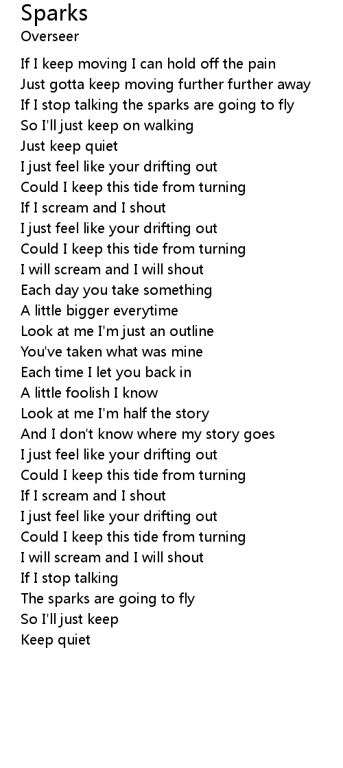 | If I stop talking the sparks are going to fly | |